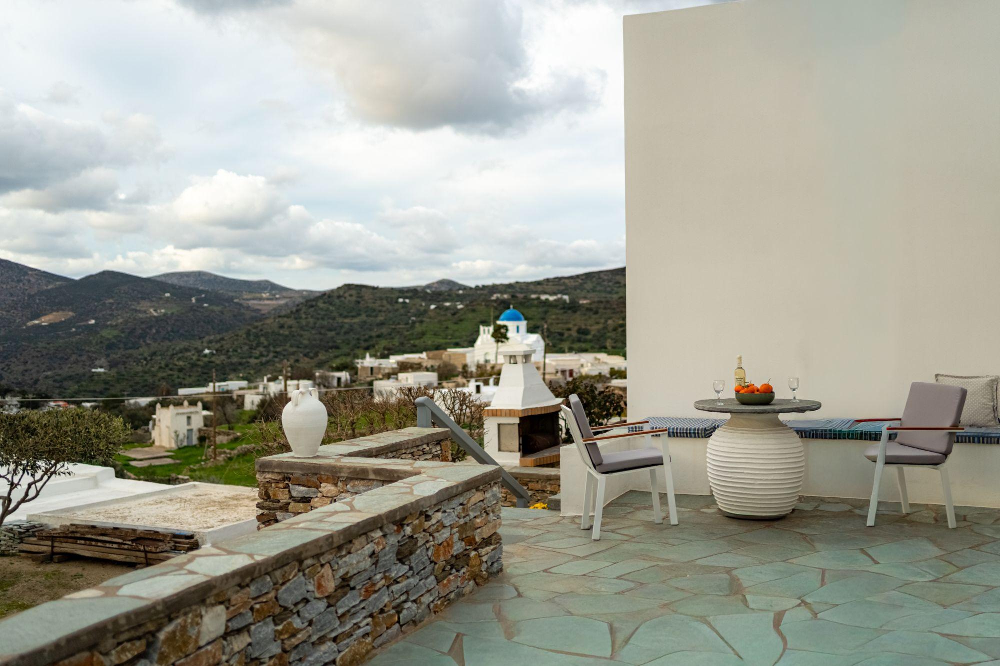 Το συγκρότημα διαθέτει δίκλινα και τρίκλινα δωμάτια καθώς και δύο άνετα στούντιο. Όλα τα δωμάτια είναι απλά αλλά καλαίσθητα επιπλωμένα και προσφέρουν όμορφη θέα στο βουνό. Η μονάδα βρίσκονται στον παραδοσιακό οικισμό της Καταβατής, ο οποίος πήρε το όνομά του λόγω της θέσης του πάνω από την Απολλωνία και της κατηφορικής διαδρομής που οδηγεί προς αυτή. Την είσοδο του χωριού κοσμούν δύο παραδοσιακοί ανεμόμυλοι.