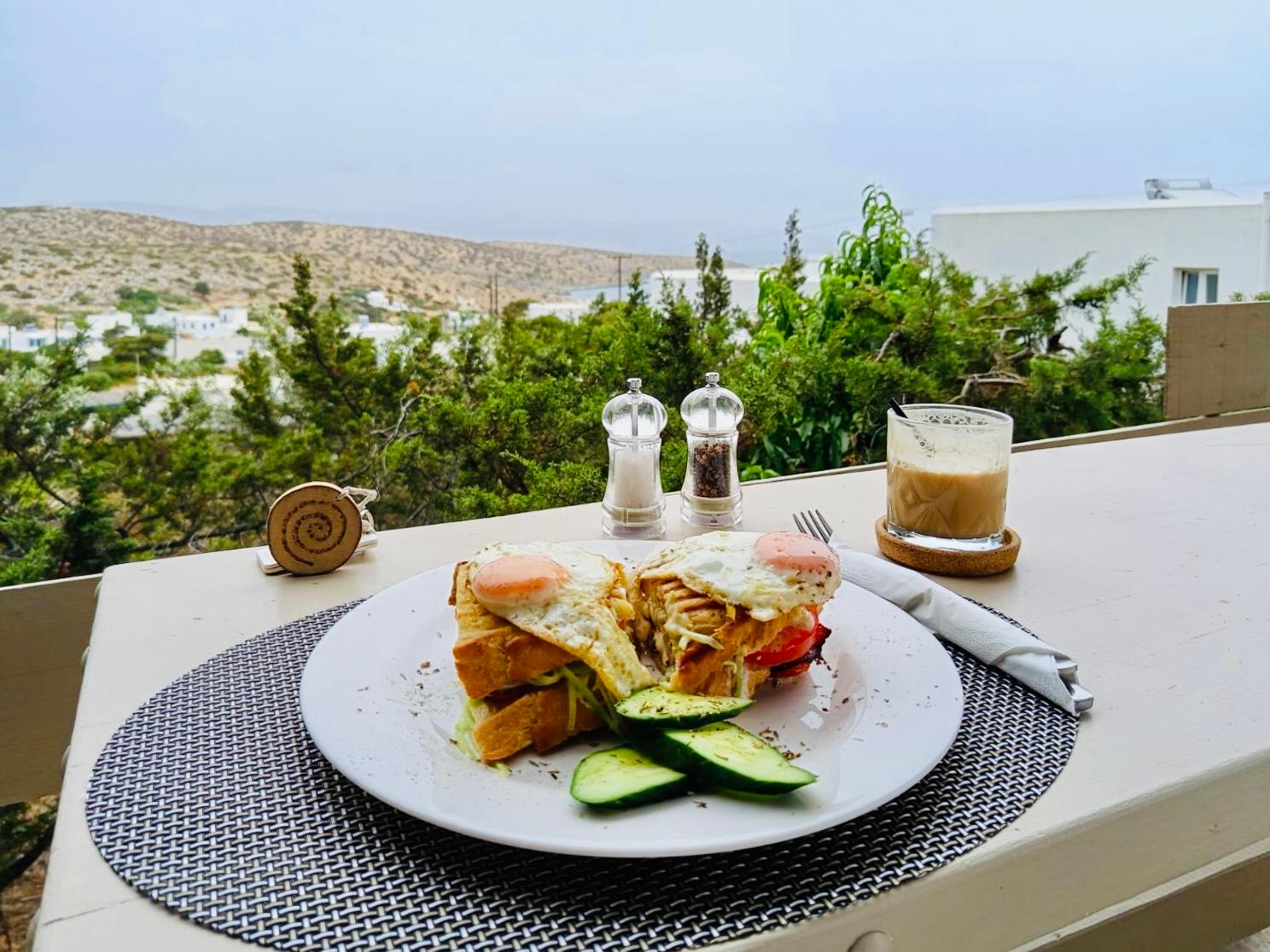At Speires, you can enjoy your breakfast or brunch in our garden, overlooking the harbor and the picturesque village of Iraklia.